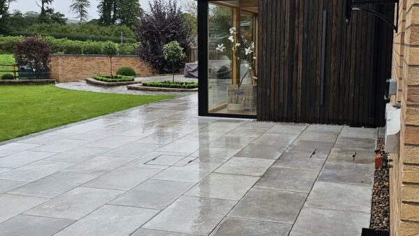 Tandur grey limestone with a tinted mint cobble border